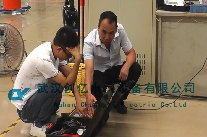 在客戶抵達武漢的前兩天,我司技術人員便率先架設起了這套串諧裝置進行最后的調(diào)試。客戶抵達武漢后,首先前往我司廠房進行驗貨和操作學習。客戶抵達我司生產(chǎn)廠房后,徑直開始學習設備。在設置好試驗防護欄后,儀器開始升壓。