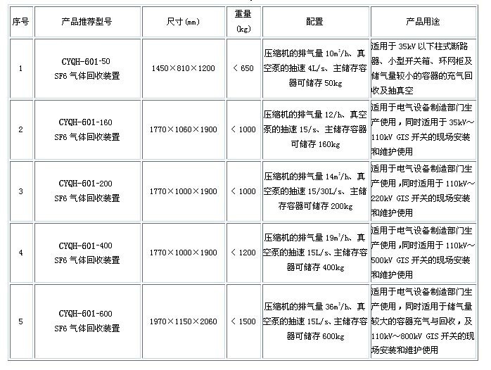 SF6氣體回收充氣裝置的標(biāo)準(zhǔn)參數(shù)如下: