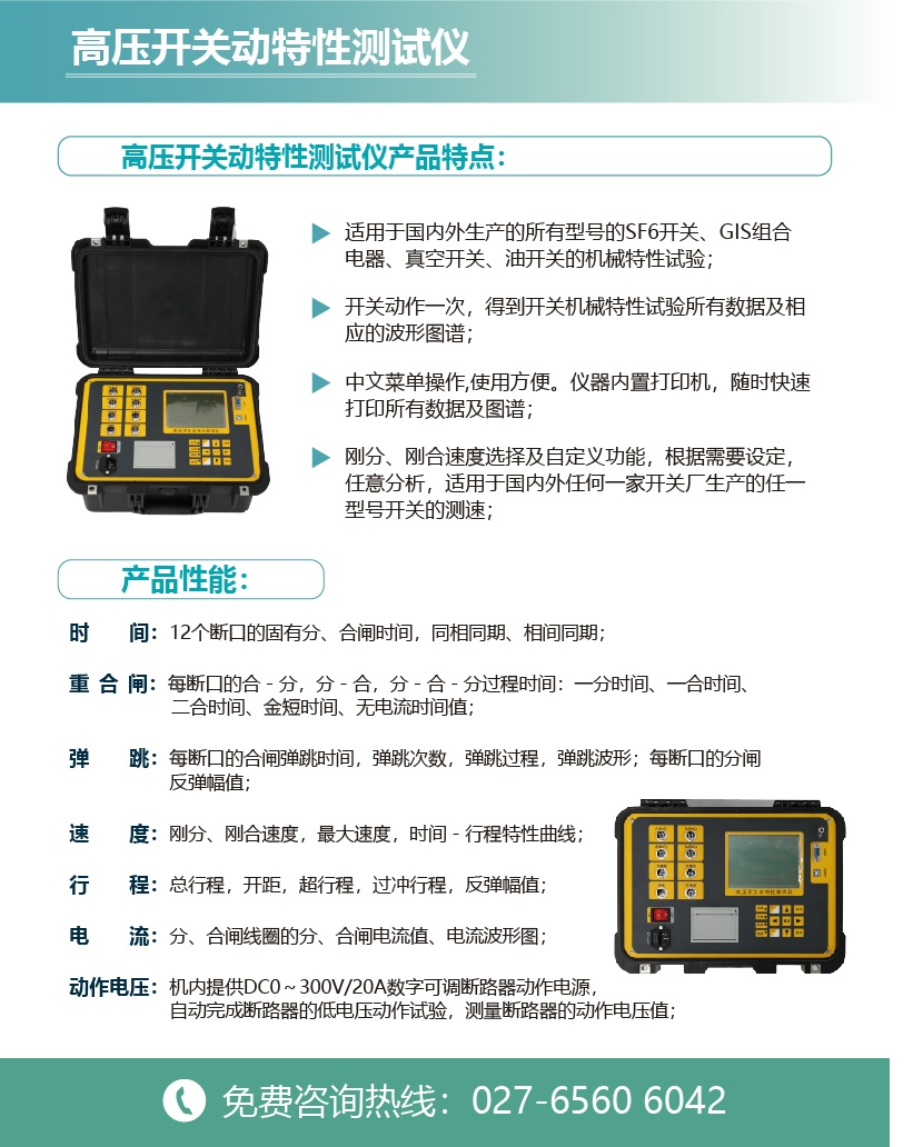 剛分、剛合速度選擇及自定義功能,根據(jù)需要設(shè)定,任意分析,適用于國內(nèi)外任何一家開關(guān)廠生產(chǎn)的任一型號開關(guān)的測速。
